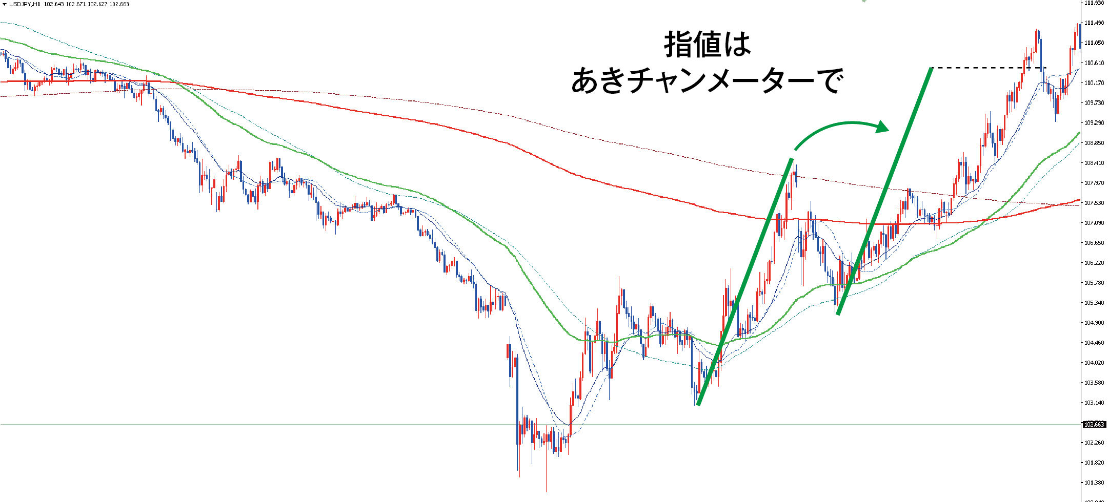今回は、前回の「三角で楽々トレンドフォロー」を使って、