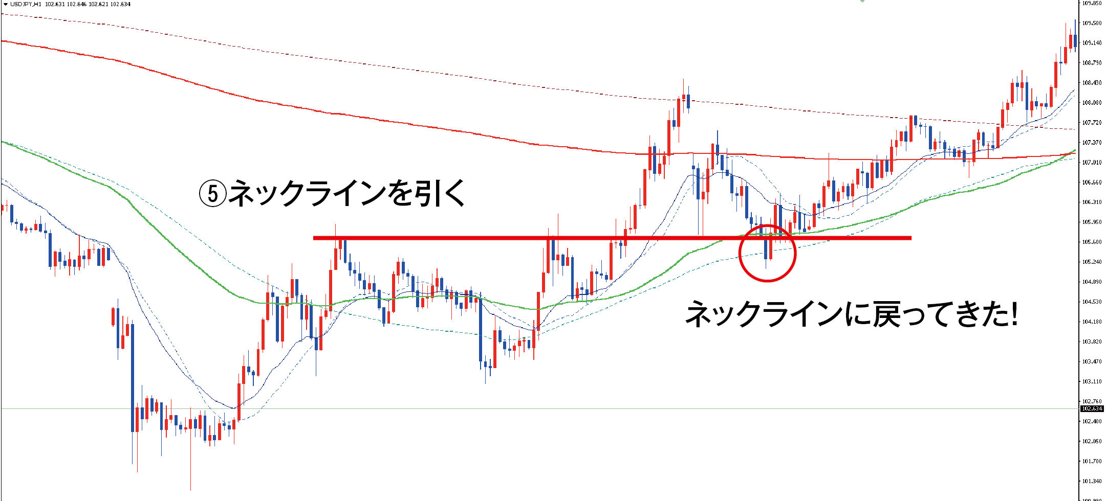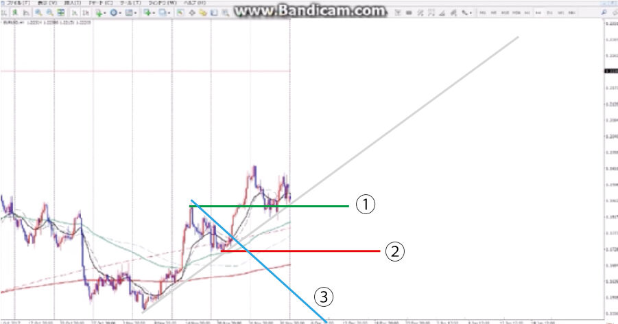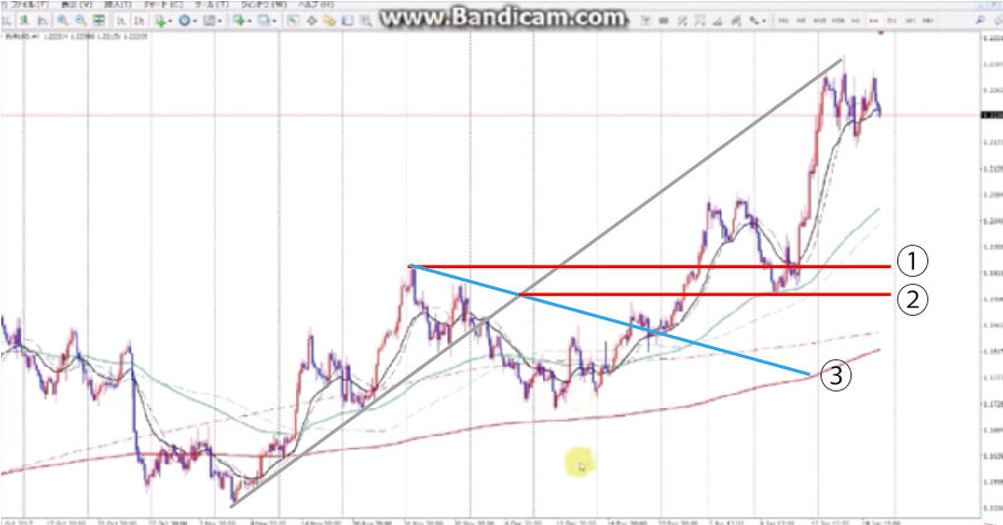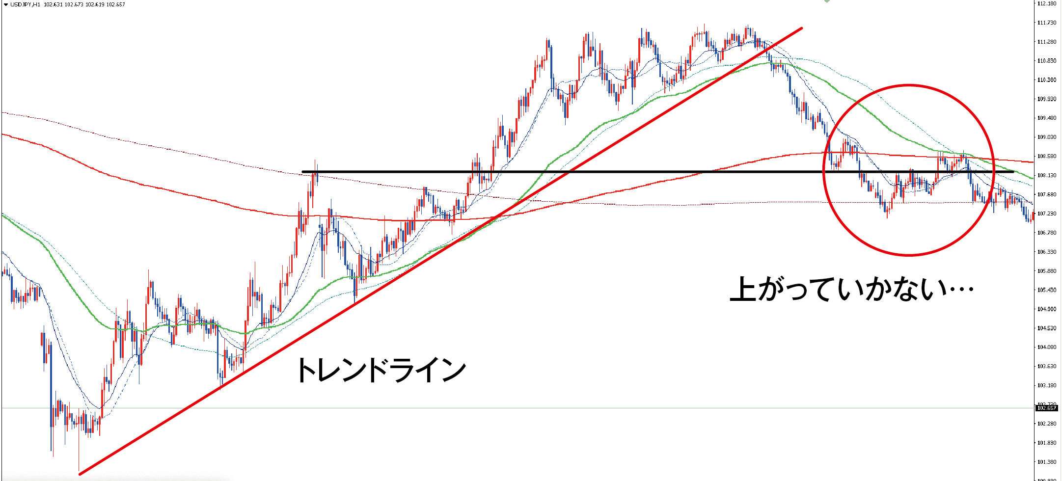 ちなみに、どこに押してきたかを水平ライン引いてみると、