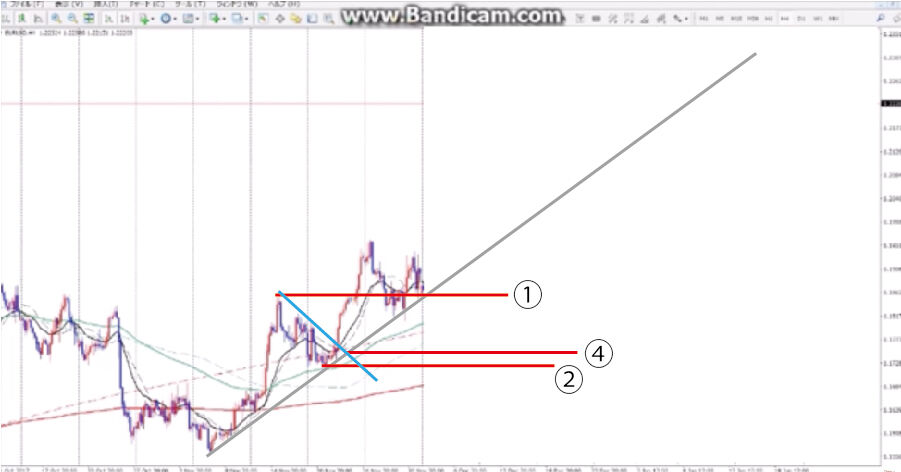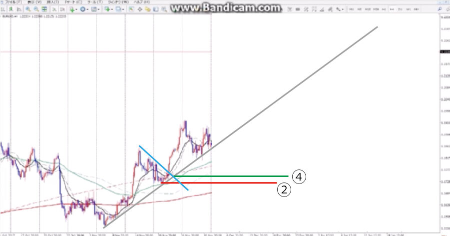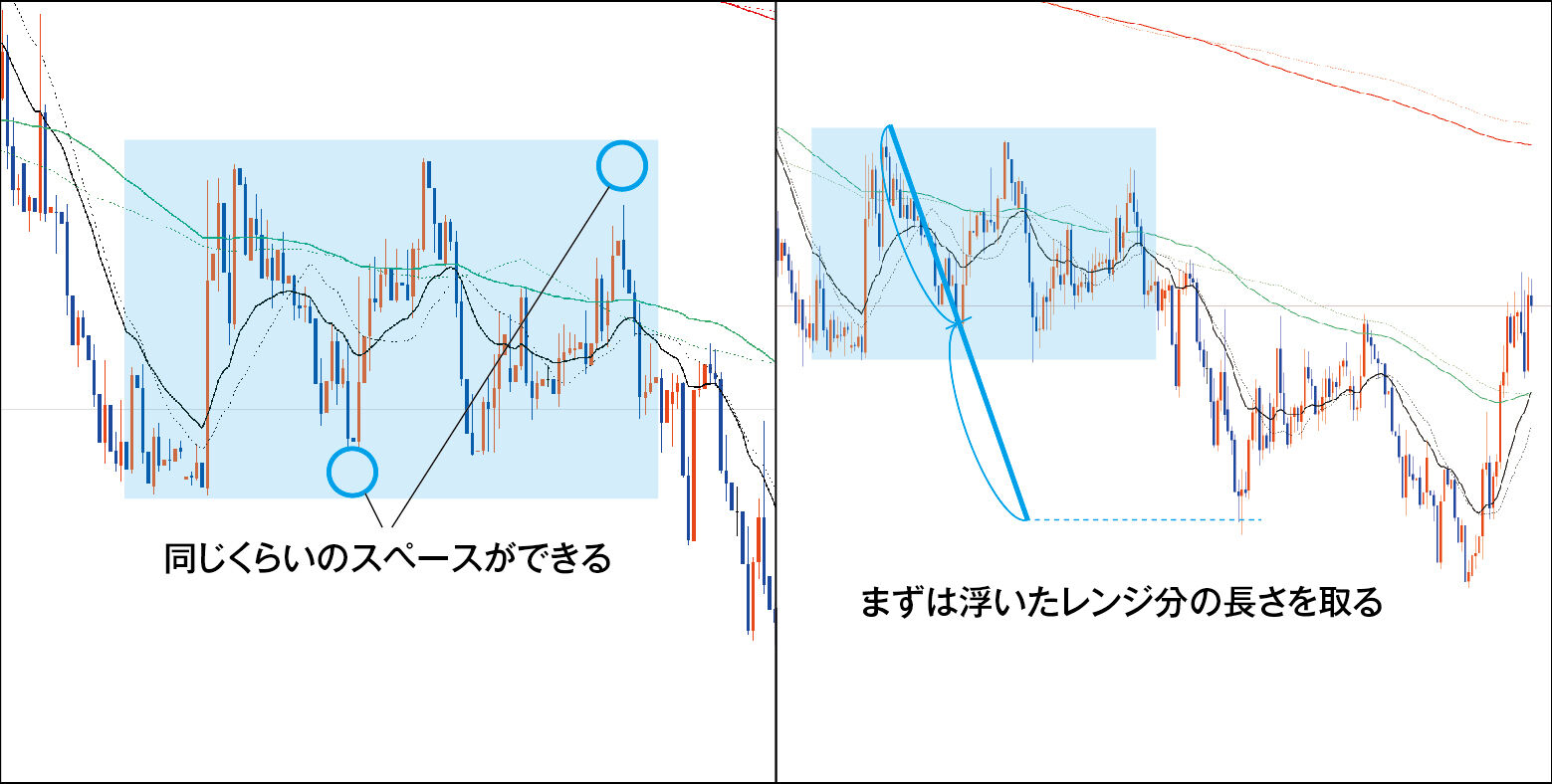 少しわかりにくいですが、最初の押しに切り下げラインを引き、