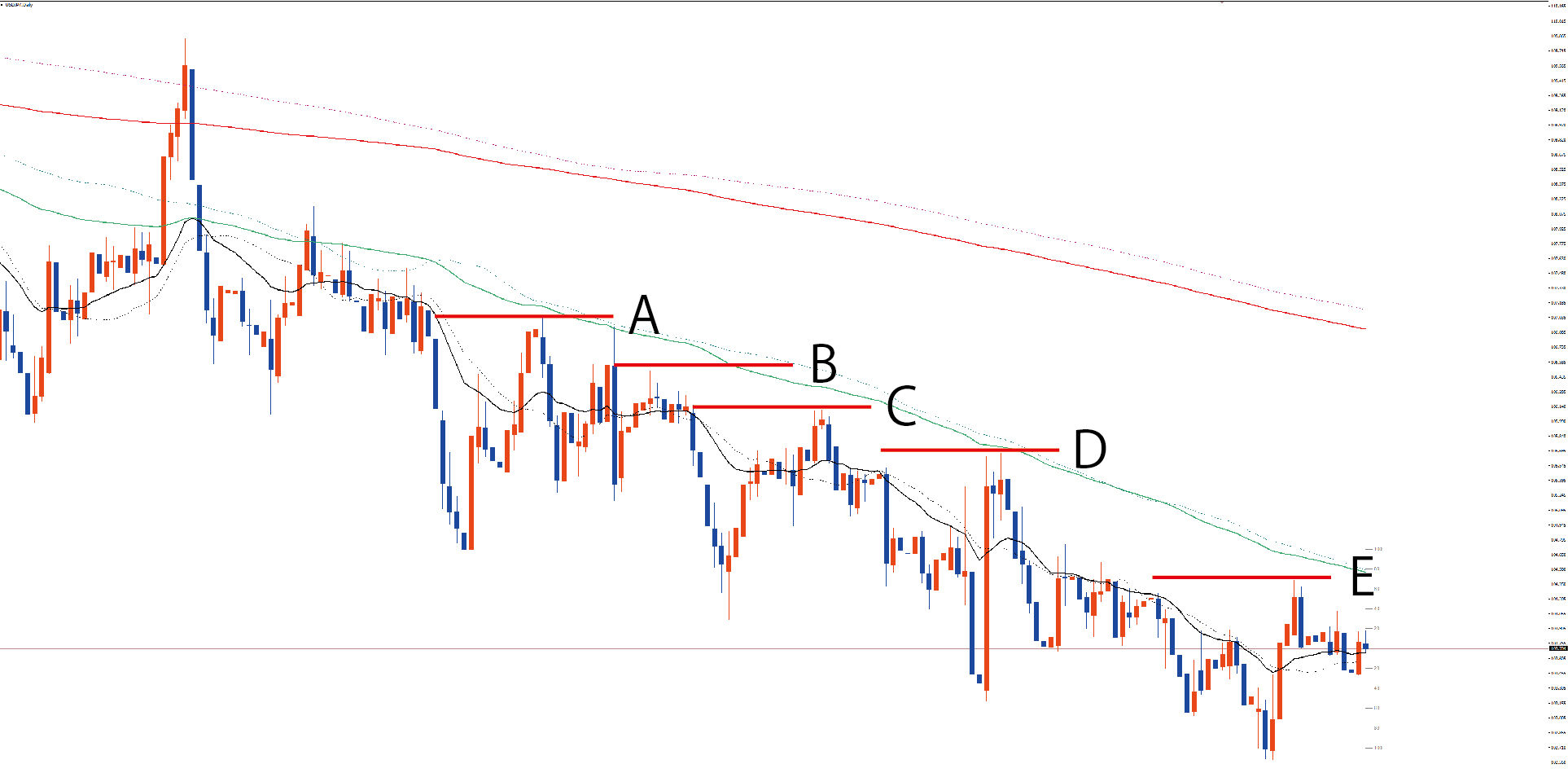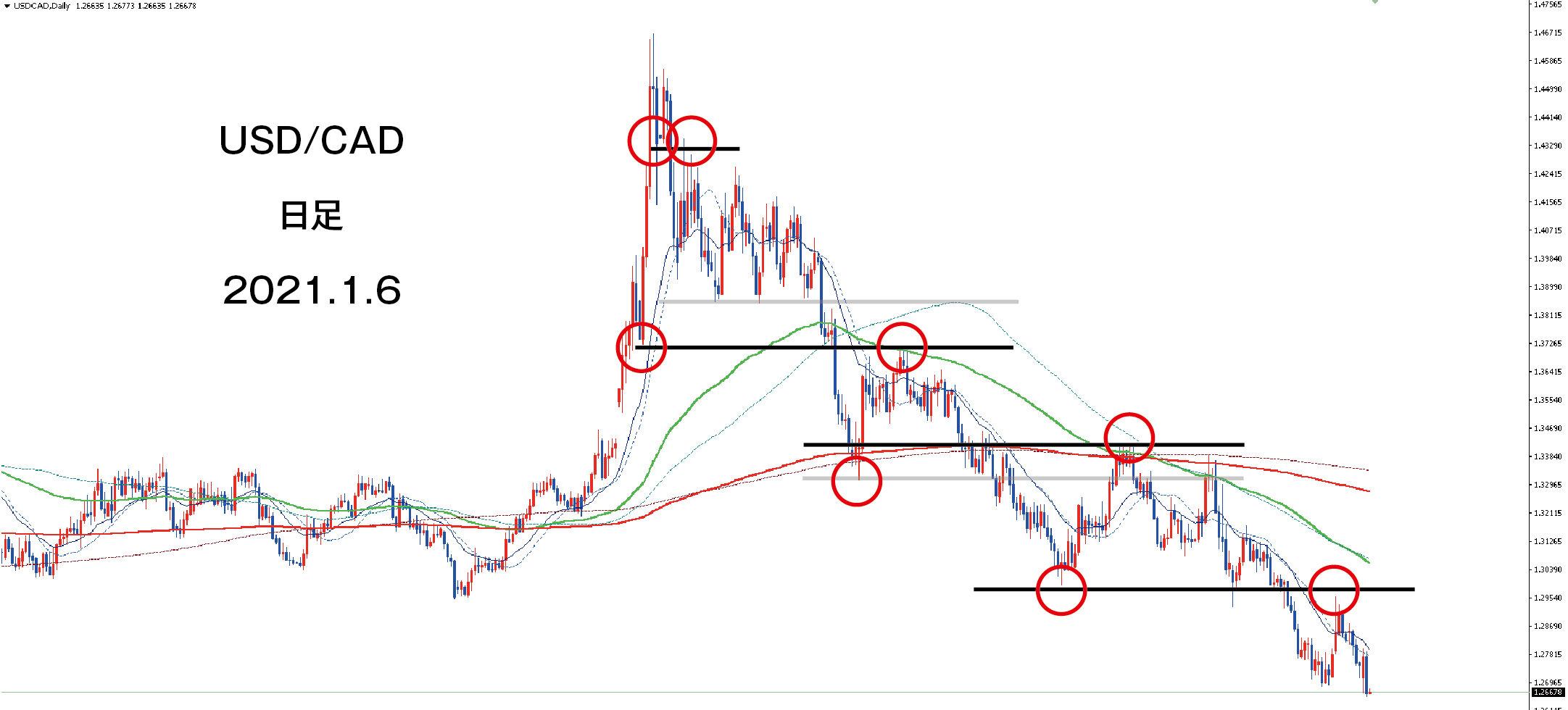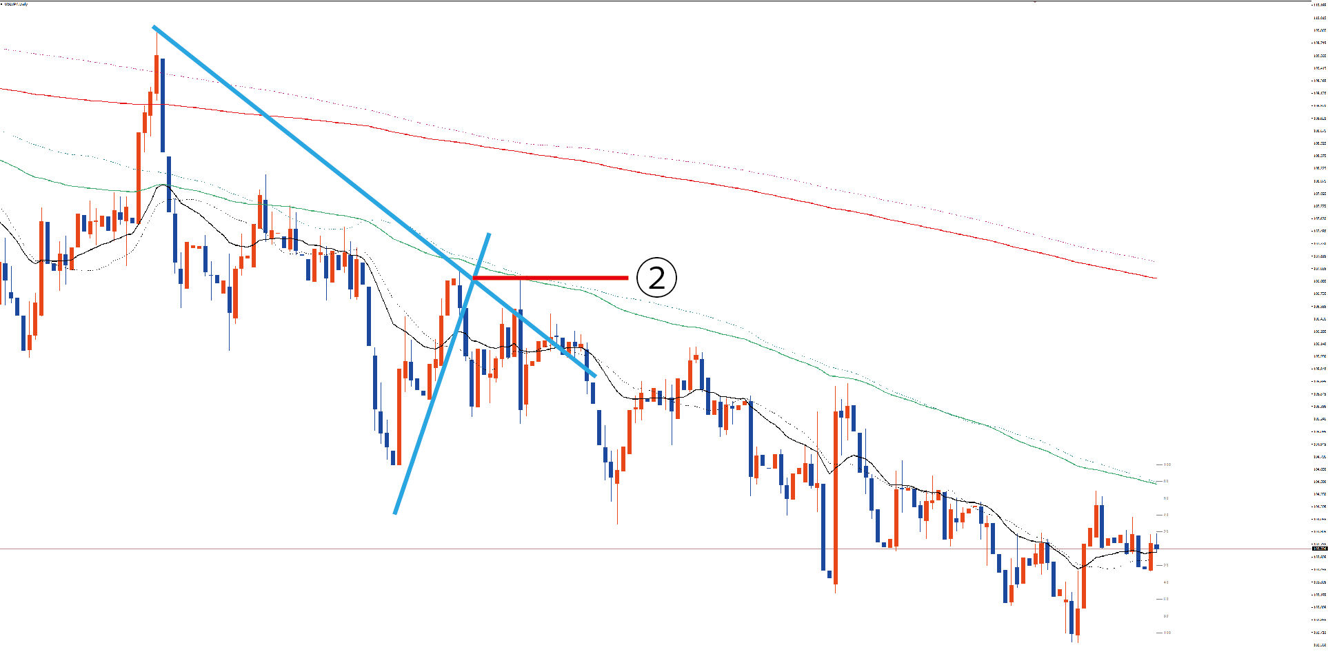 日足です。ダウントレンドですね。