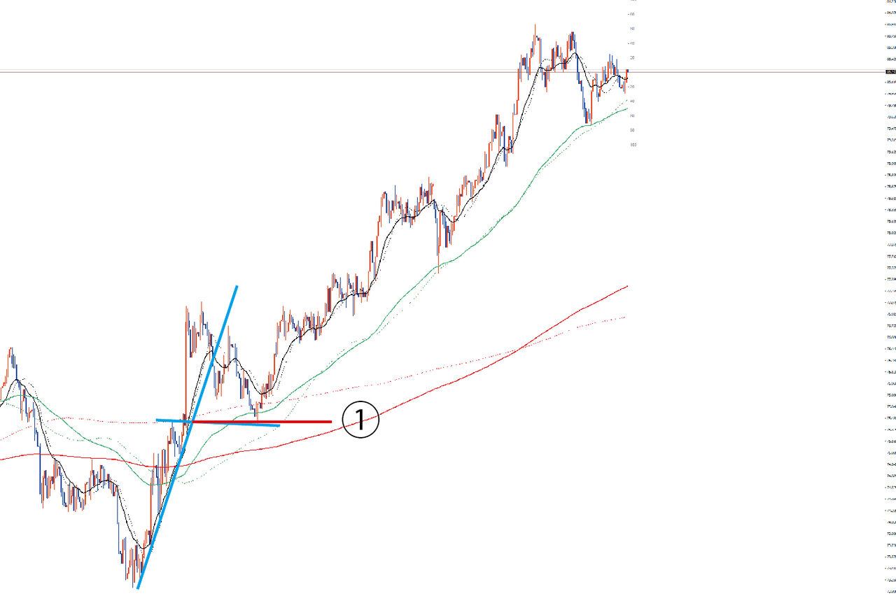 ちなみに、どこに押してきたかを水平ライン引いてみると、