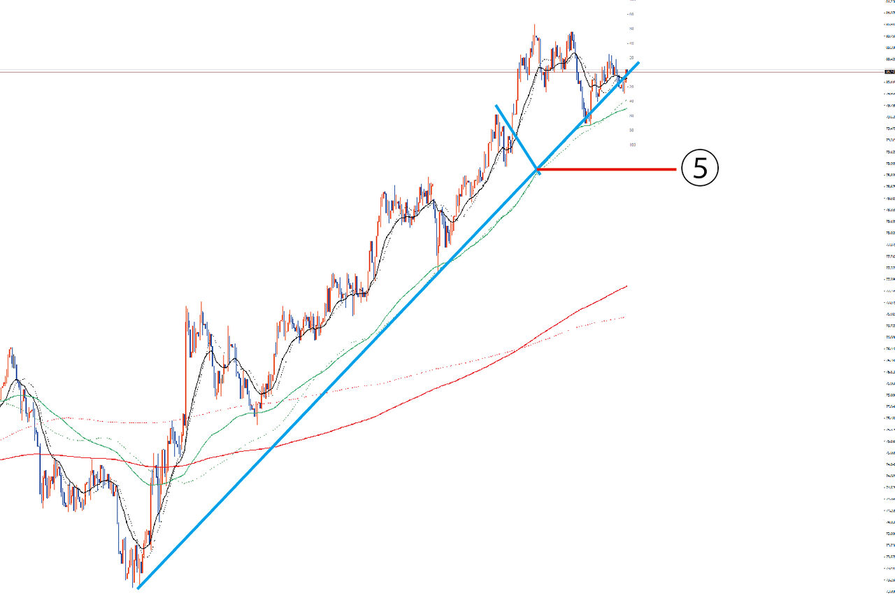 トレンドラインとの交点を結んでみました。